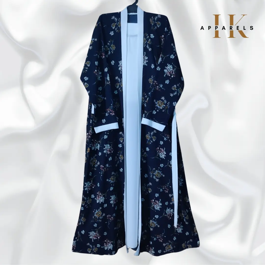 (4 piece)Inner-Stitched Printed Gown Abaya with scarf and belt